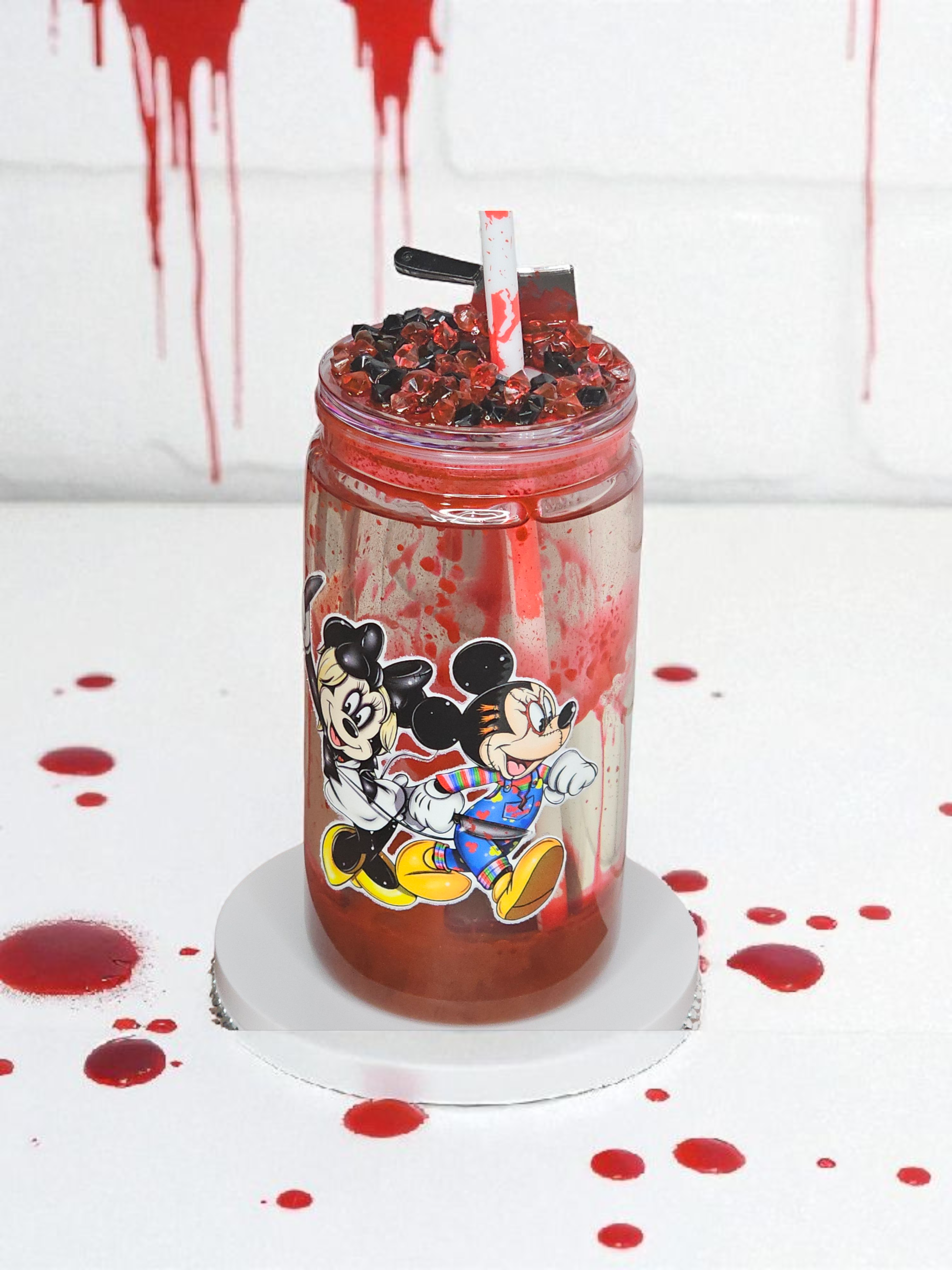Celebrate Halloween with this playful 16 oz lava effect tumbler featuring Mickey and Minnie dressed as Chucky and his Bride. Complete with a matching ice top, it’s perfect for keeping your drinks cool while embracing spooky fun. Don’t miss out on this unique chase collectible!